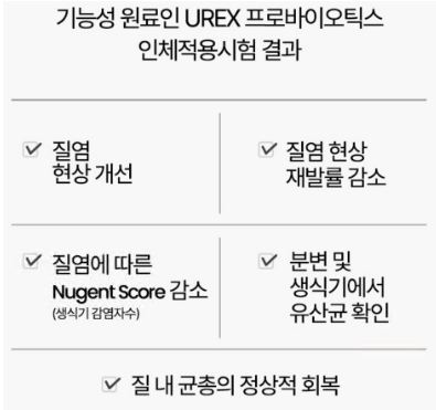이 제품의 가장 큰 특징은 국내 최초로 여성의 질 건강에 도움을 줄 수 있는 개별 인정형 원료인 UREX 프로바이오틱스를 함유한 멀티 프리미엄 유산균이라는 점입니다. 장과 질 건강을 동시에 케어할 수 있도록 설계되었으며, 엑티브바이알 용기 포장으로 유산균의 생존력을 보장합니다.