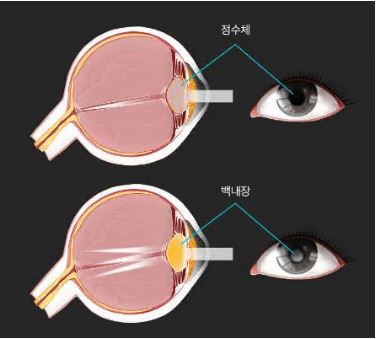 - 한쪽 눈으로 사물을 볼 때 겹쳐 보이거나 뿌옇게 보임