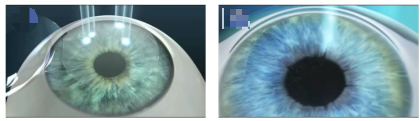 라식(LASIK)수술은 각막의 윗부분(각막상피, 보우만층)을 수평으로 잘라 뚜껑(절편)을 만든 후 그 아래에 있는 각막 실질을 레이저로 깎은 후 다시 덮는 수술입니다.